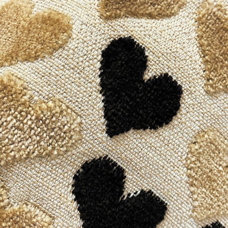 凹凸感がふんわりキュートで楽しいベルギー製の生地を使用。たくさん並んだハートモチーフもベージュとブラックの組み合わせで、落ち着いた大人の可愛さが詰まったフラップ式のミニリュックです。