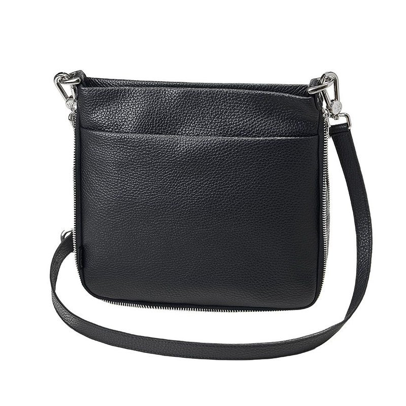 牛革のショルダーストラップは取り外しができ、片側5段階調節が可能。斜め掛けもできる長さがあるので、アクティブなシーンにも活躍します。