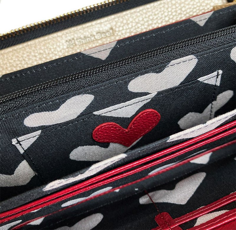 ファスナーを開けると、中もモノトーンのハート柄♡