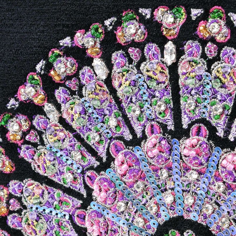 ピンクとパープルが程よく混ざり合い、宝石のようにキラキラと輝くビーズやスパンコール、クリスタルガラスが織りなす色彩は、華やかで思わずため息が出るほどのゴージャス感に目を奪われます。