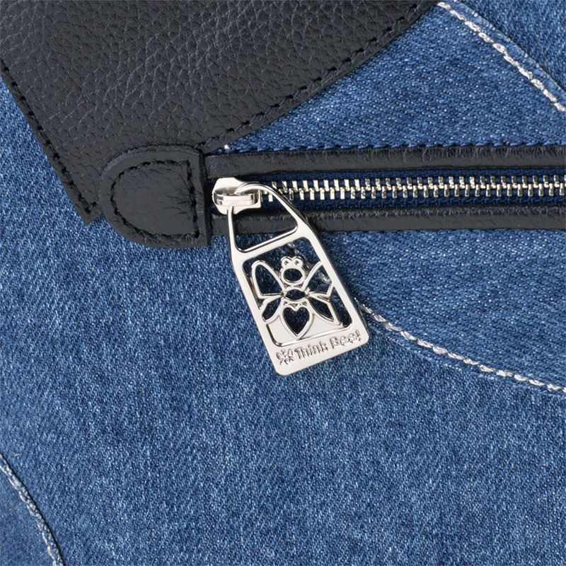 クールなゼブラのプリント生地を裏地に使用し、カジュアルテイストのデニムに対して内装は辛口な仕上がりに。