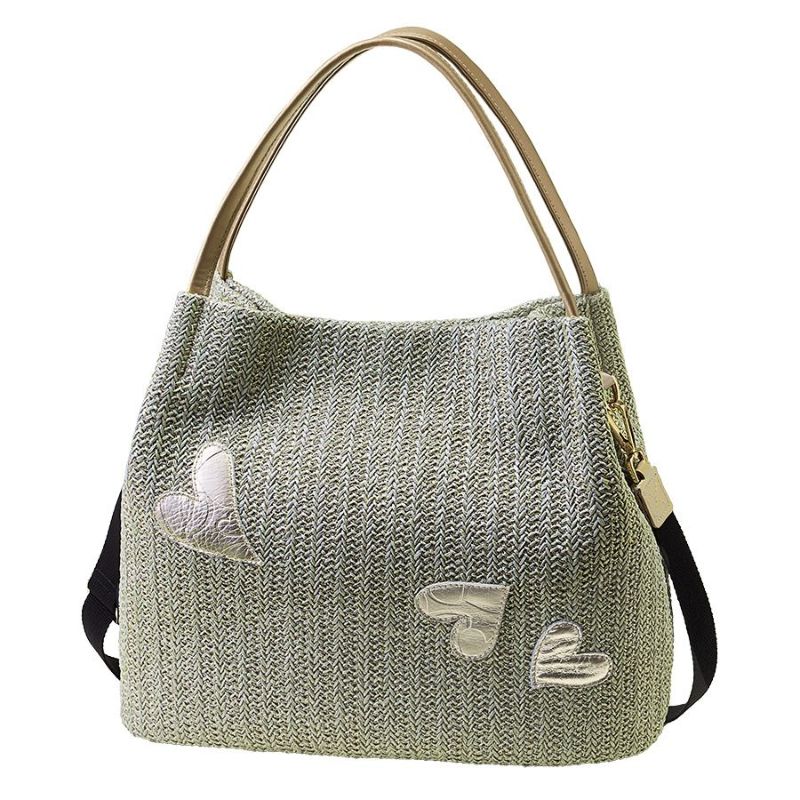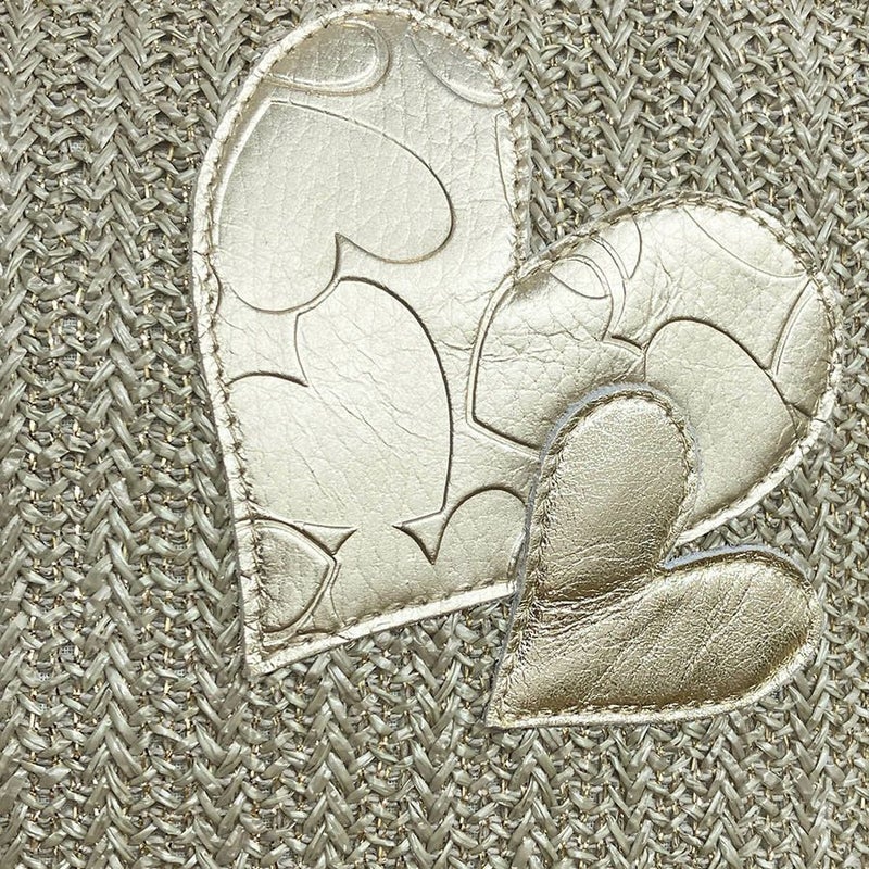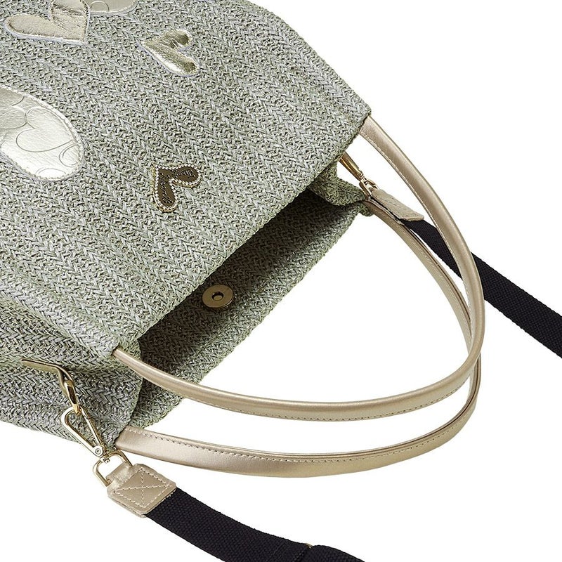 リズミカルに踊るハートの光沢が軽やかで表情豊かなバッグに仕上げています。