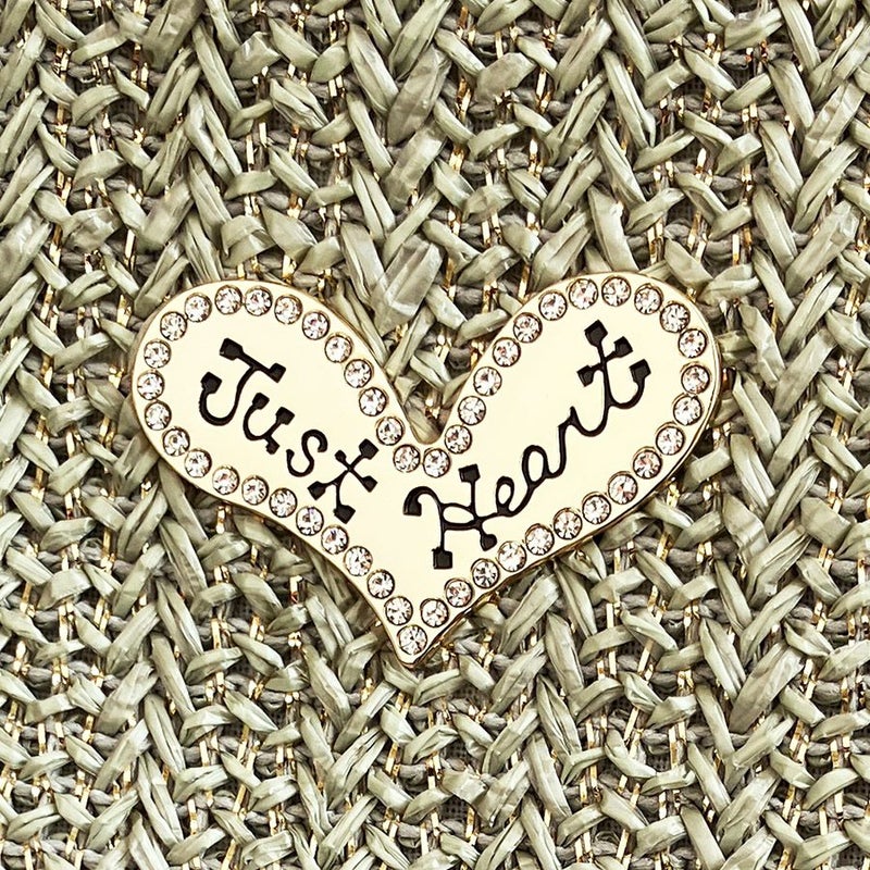 クリスタルガラスで縁取られた煌めくJust Heartのロゴ入りメタルプレートをあしらい、華やかさをプラス。