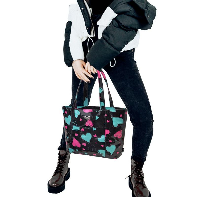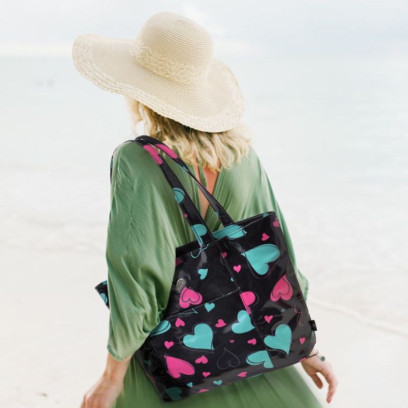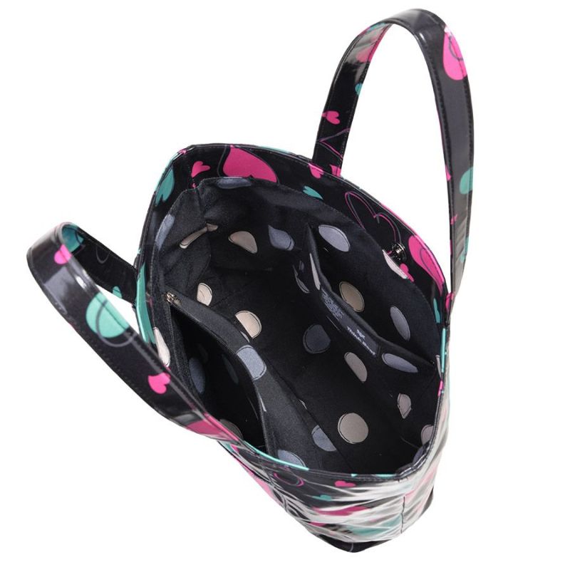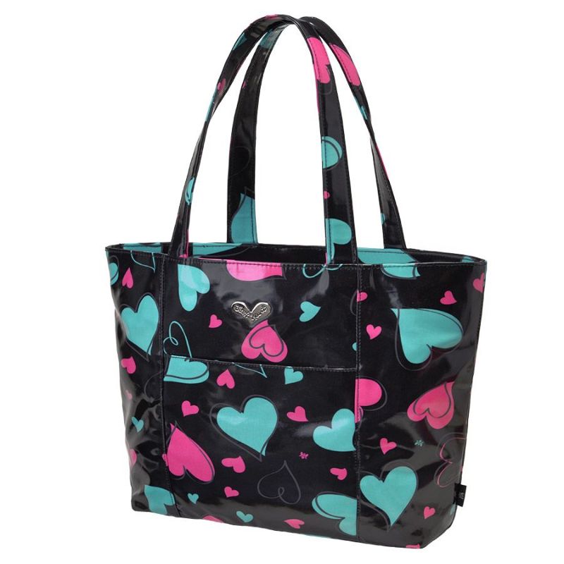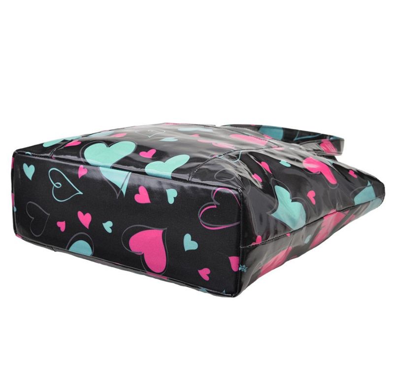 ピンクとブルーのハートがキュートな表地には、PVCコーティングを施しているので、汚れてもさっとひと拭きで水濡れにも強く雨の日も安心です。