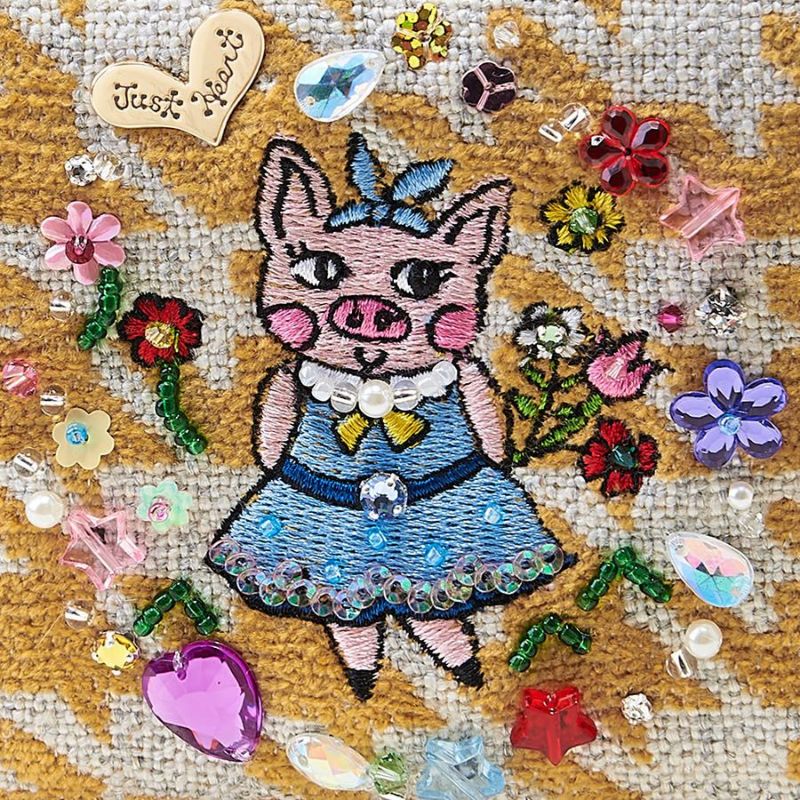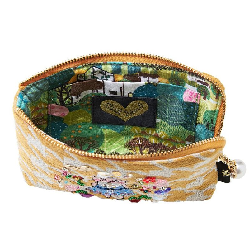 | 素材 | | 表地原産国 | トルコ | | 表地 | コットン46%・アクリル35%・ポリエステル14%・レーヨン5% | | 裏地 | コットン100% | | 付属 | - | | その他 | ビーズ・スパンコール・クリスタルガラス | | サイズ(約) | | 本体(突起部を除く最大) | H 11 × W 15 × D 2 cm | | ハンドル立ち上がり | -/- | | ショルダーストラップ長さ | -/- | | 重さ | 65g | | | 仕様 | | 開口部 | L型ファスナー式 | | 内側 | オープンポケット×1 | | 外側 | - | | その他 | 作品により柄の出方や装飾が異なる場合があります | | 補足情報 | | - | |