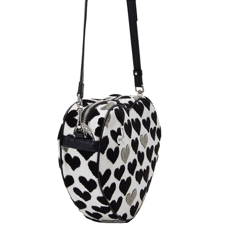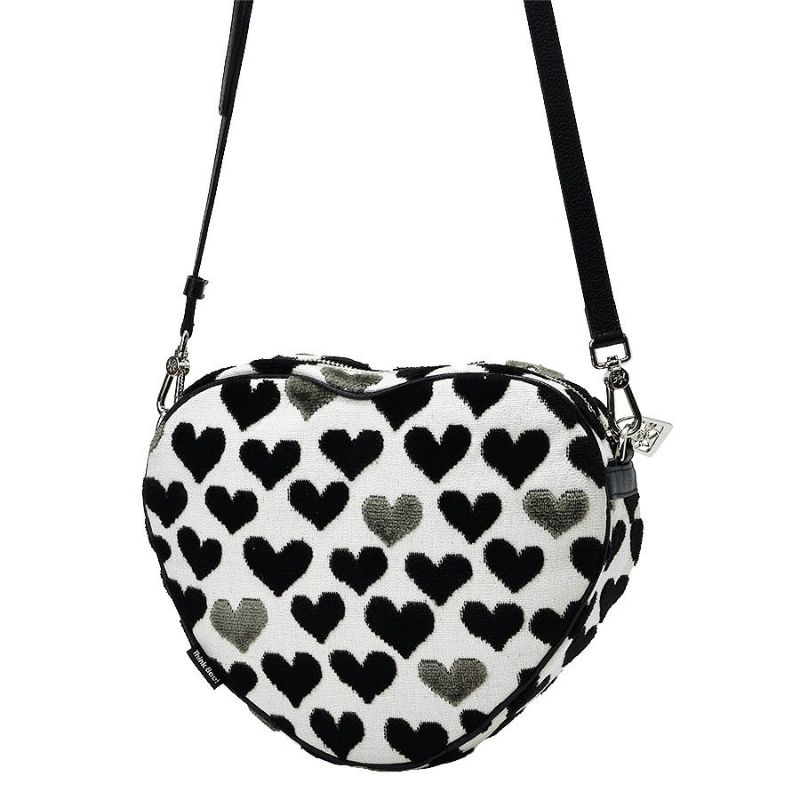 ハートモチーフのふんわりとした凹凸感がキュートで楽しいベルギー製生地で、フォルムもハート型に仕立てました。