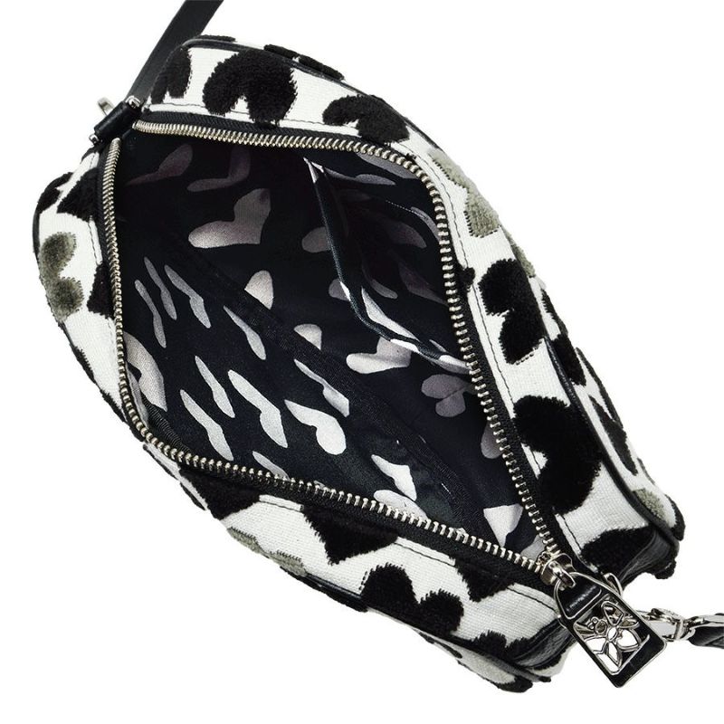 表地カラーに合わせてショルダーストラップやパイピングは、ブラックのシュリンクレザーで印象を引き締め、ころんとしたハート型を際立たせています。