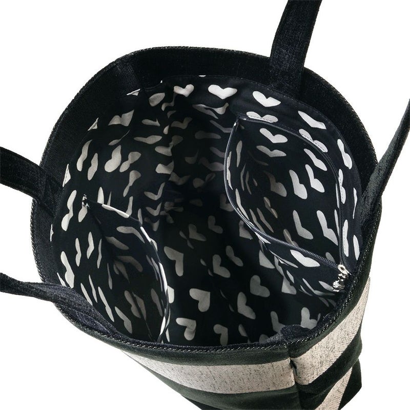 出し入れしやすいオープン式の開口部は、メイン1室で中身も見やすく、貴重品を入れやすい大きめサイズのファスナー付きポケットと、オープンポケットが1つずつ付いています。