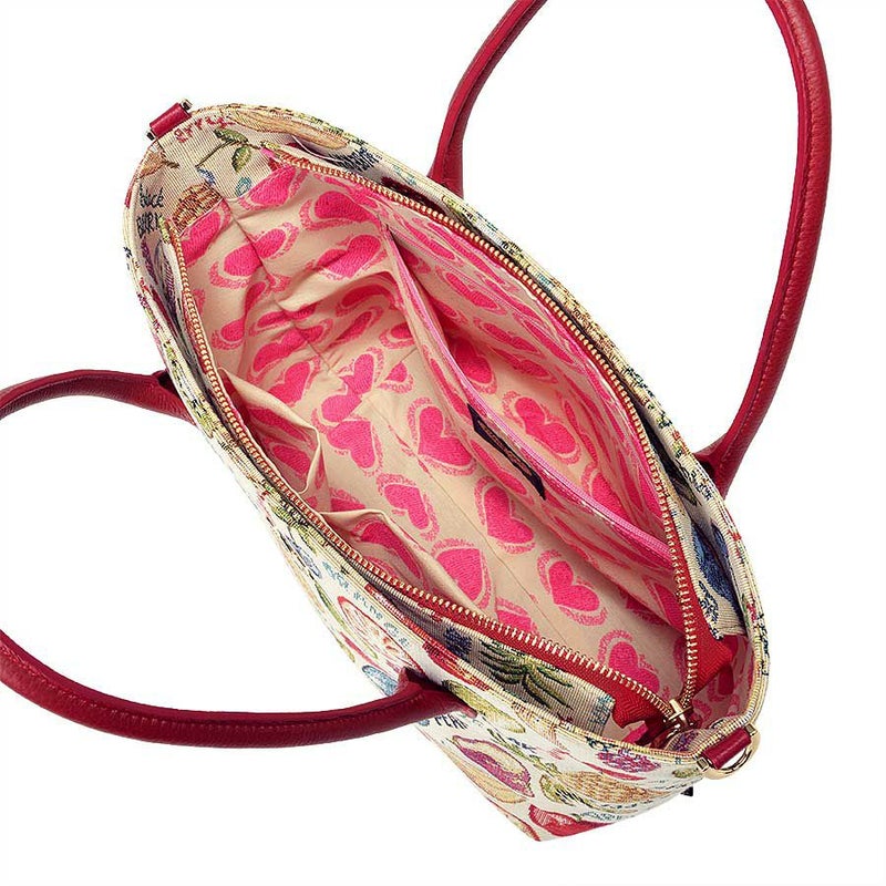 ファスナーを開けると、裏地もベージュ×ピンクハートでポップさ全開。