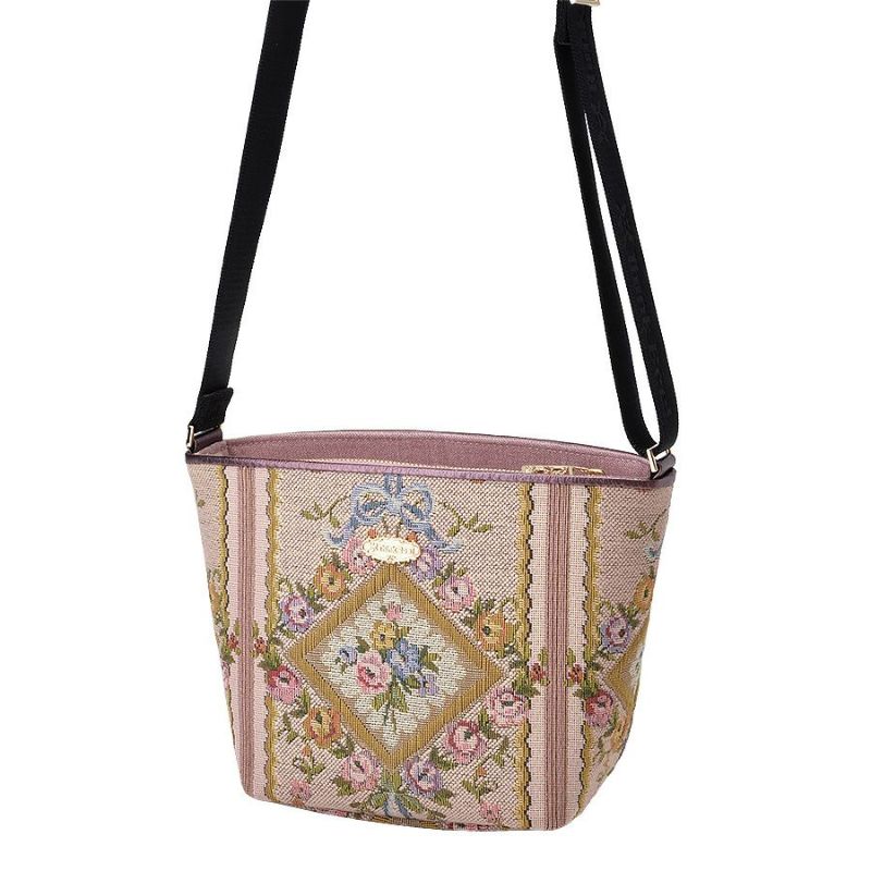 表地のイタリア製ゴブラン織生地は、ブーケやたくさんのミニバラが織り込まれた甘く優美な柄で、フランス王妃マリー・アントワネットの生きたロココ調の宮殿装飾のイメージ。