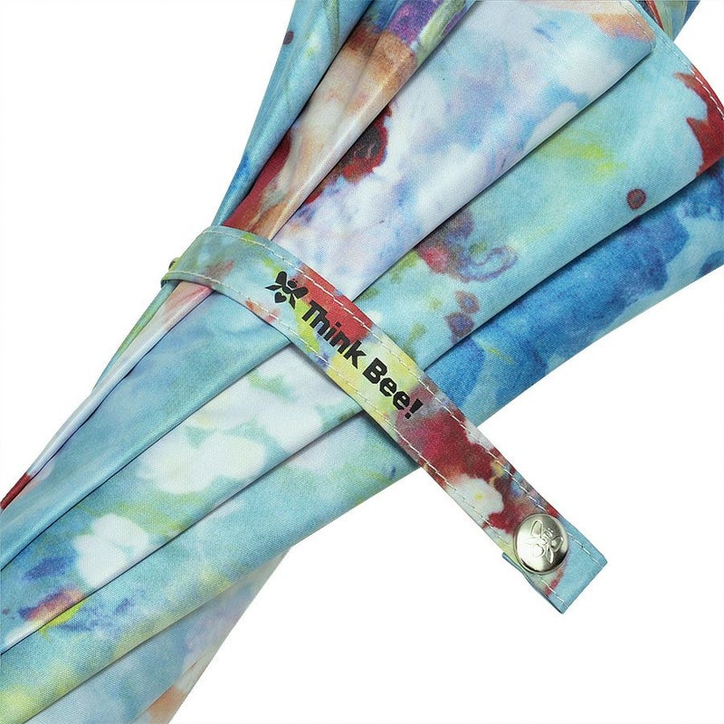 表布はもちろん裏布もオリジナル。傘を開けると遊び心たっぷりのドット柄にThink Bee!のロゴをあしらいました。