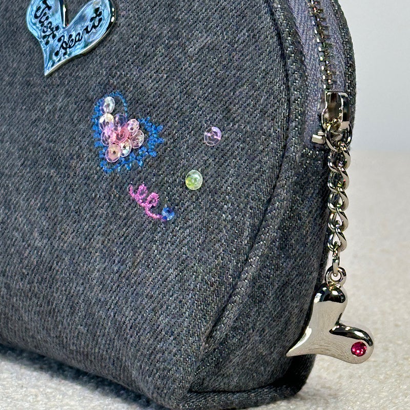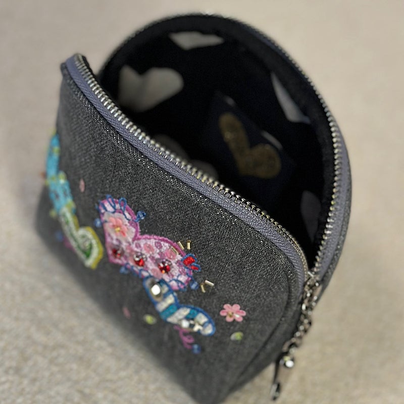 ファスナー開閉仕様で中身をしっかり守りつつ、バッグの中でも可憐なアクセントに。