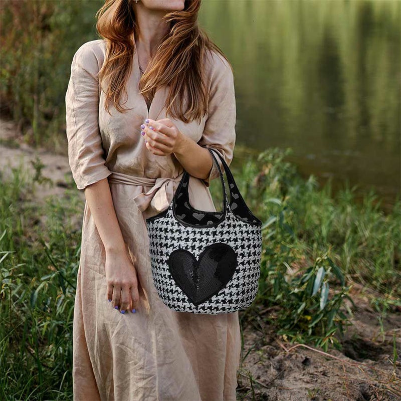 | 素材 | | 表地原産国 | トルコ | | 表地 | ポリエチレン82%・ポリエステル18% | | 裏地 | コットン100% | | ハンドル | 表地に同じ・合成皮革 | | その他 | スパンコール | | サイズ(約) | | 本体(突起部を除く最大) | H 21 × W 32 × D 17 cm | | ハンドル立ち上がり | 19 cm/- | | ショルダーストラップ長さ | -/- | | 重さ | 373g | | | 仕様 | | 開口部 | マグネットホック式 | | メイン室 | 1 /- | | 内側 | ファスナー付ポケット×1・オープンポケット×2 | | 外側 | - | | ハンドル | 2 /- | | 底鋲 | 4 | | その他 | 作品により柄の出方や装飾が異なる場合があります 表面片側にスパンコール刺繍 | | 補足情報 | | - | |