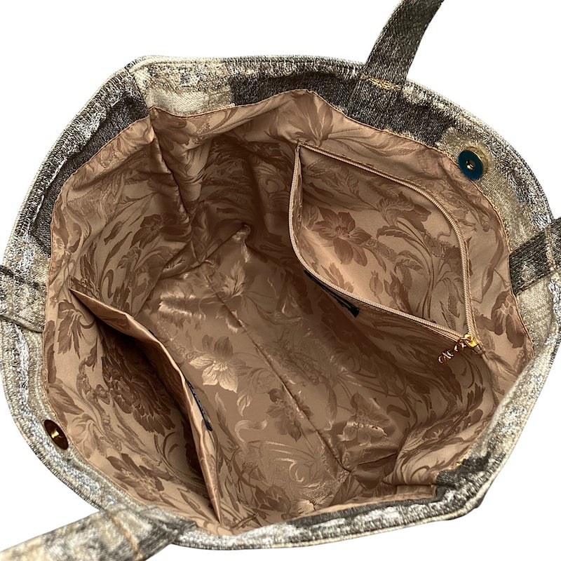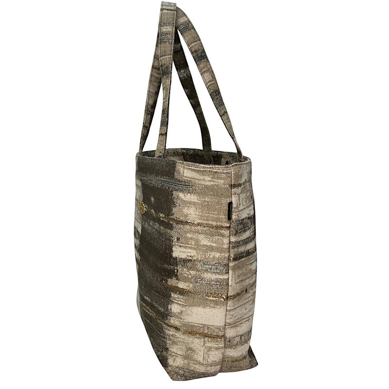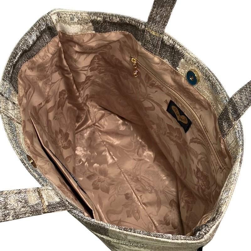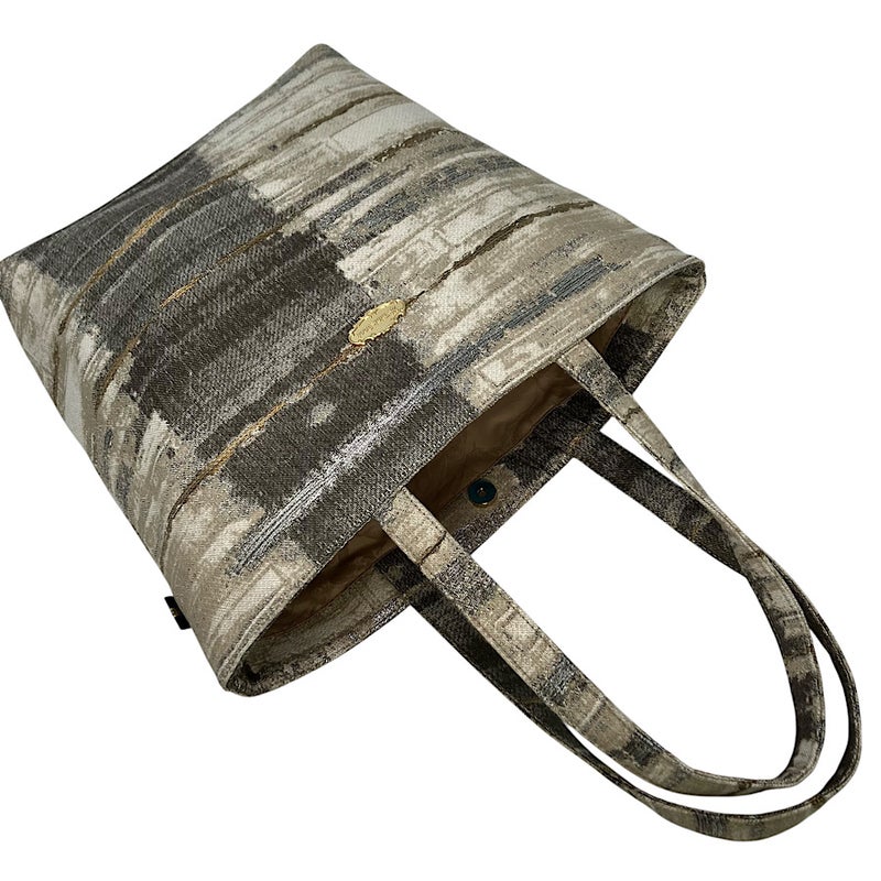 | 素材 | | 表地原産国 | スペイン | | 表地 | コットン58%・ポリエステル32%・アクリル10% | | 裏地 | コットン100% | | ハンドル | 表地に同じ | | - | | サイズ(約) | | 本体(突起部を除く最大) | H 33 × W 41 × D 13 cm | | ハンドル立ち上がり | 23 cm/- | | ショルダーストラップ長さ | -/- | | 重さ | 395g | | | 仕様 | | 開口部 | - | | メイン室 | 1 /- | | 内側 | ファスナー付ポケット×1・オープンポケット×1 | | 外側 | - | | ハンドル | 2 /- | | 底鋲 | - | | その他 | 作品により柄の出方が異なる場合があります | | 補足情報 | | - | |