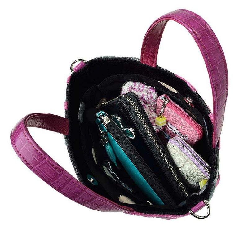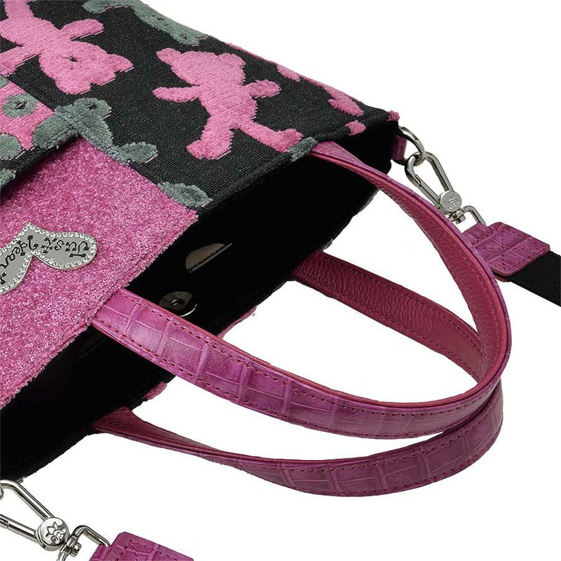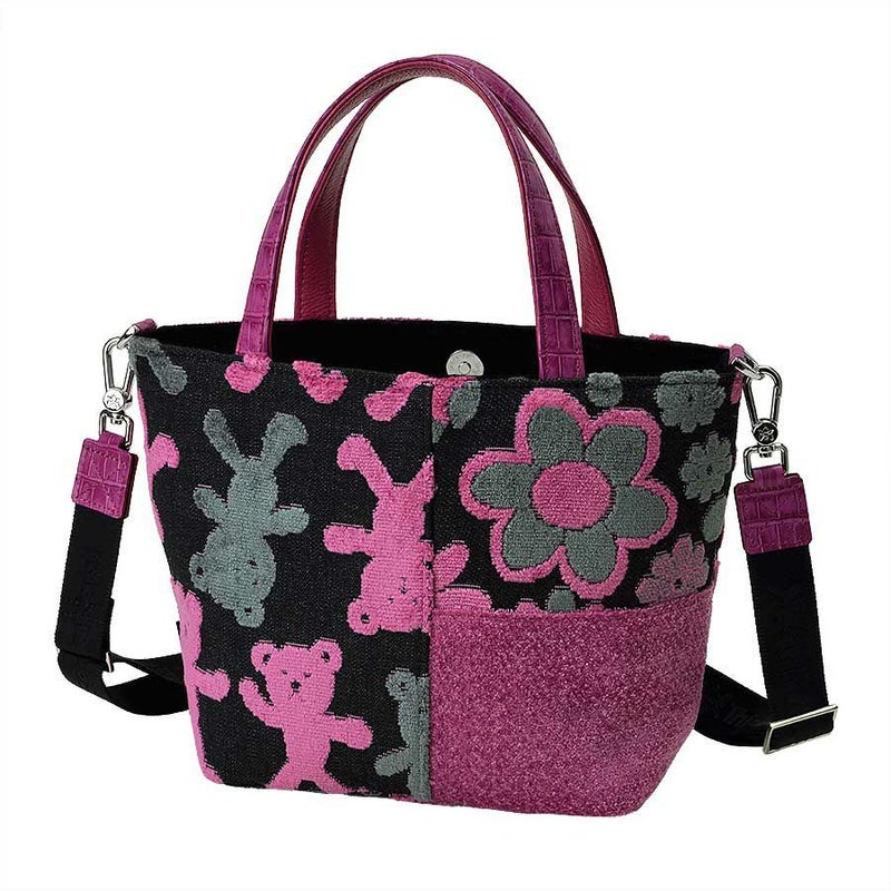 | 素材 | | 表地原産国 | ベルギー・トルコ | | 表地 | ビスコース・ポリエステル・他 | | 裏地 | コットン100% | | ハンドル | 牛革 | | その他 | ショルダーストラップ: