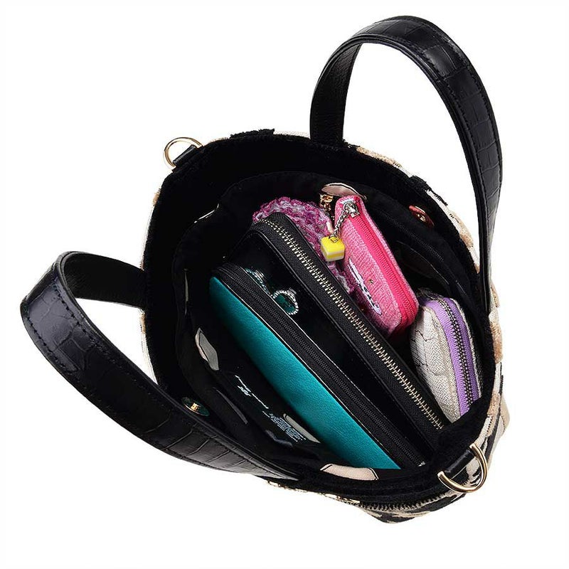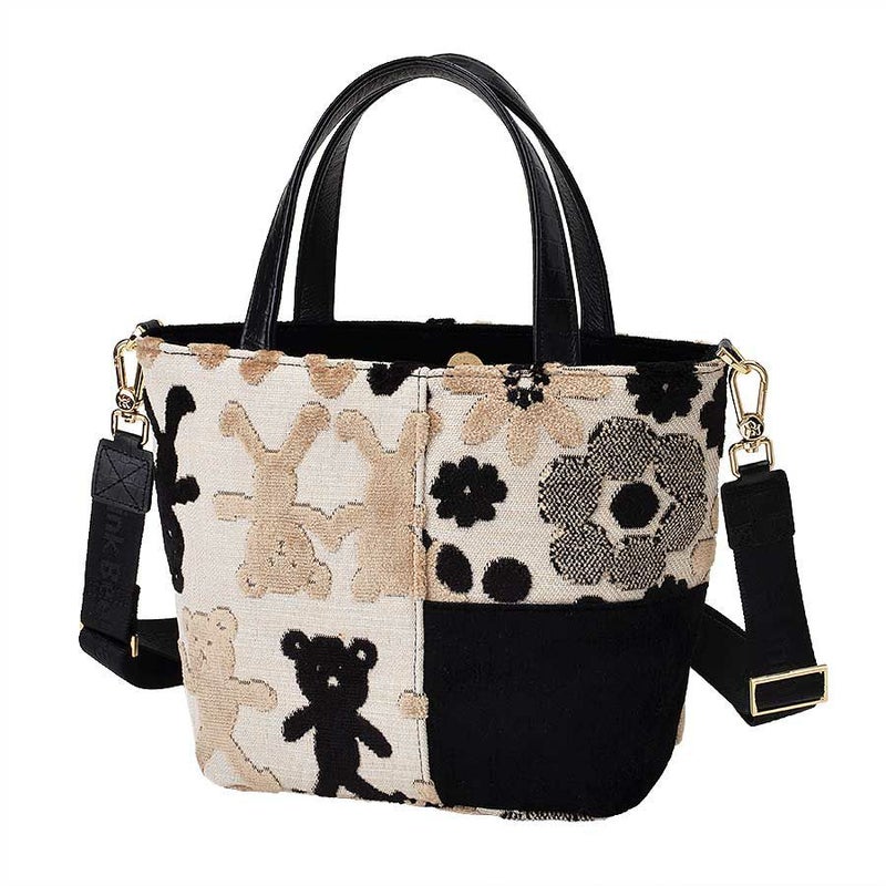 | 素材 | | 表地原産国 | ベルギー・トルコ | | 表地 | ビスコース・ポリエステル・他 | | 裏地 | コットン100% | | ハンドル | 牛革 | | その他 | ショルダーストラップ:
