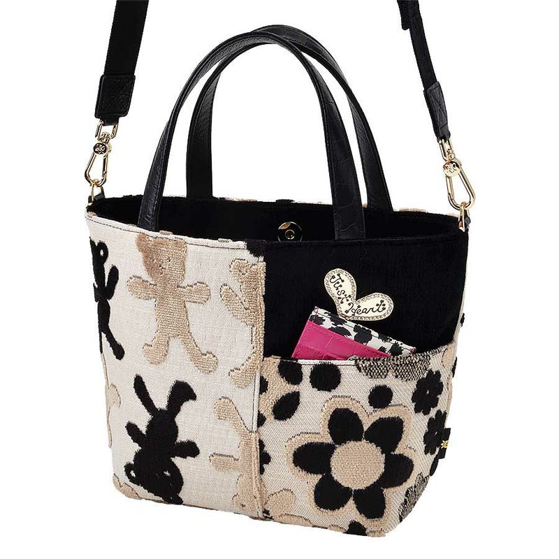 | 仕様 | | 開口部 | マグネットホック式 | | メイン室 | 1 /- | | 内側 | ファスナー付ポケット×1・オープンポケット×1 | | 外側 | 前面:オープンポケット×1 | | ハンドル | 2 /付け替え用ショルダーストラップ付 | | 底鋲 | 4 | | その他 | 作品により柄の出方が異なる場合があります | | 補足情報 | | - | |