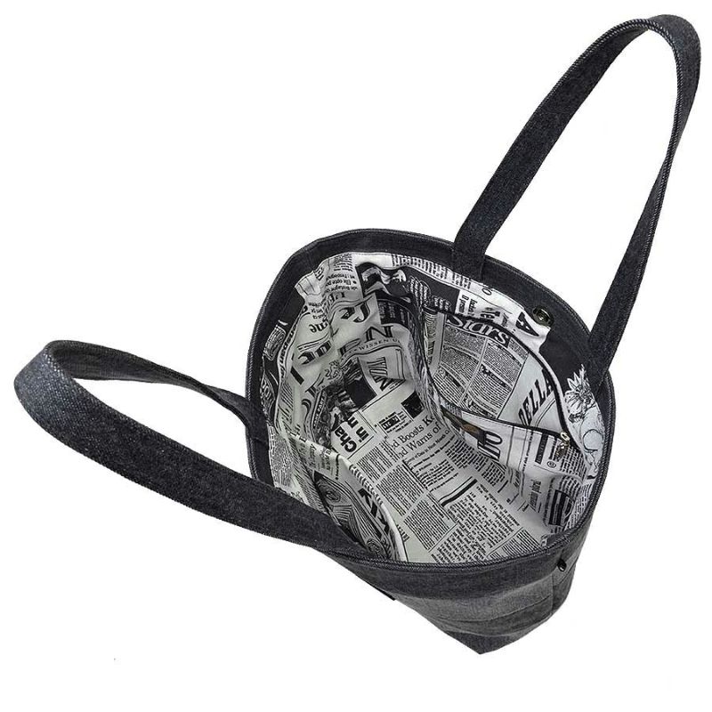 内装には英字のニュースペーパー柄を使用し、遊び心も忘れずに。