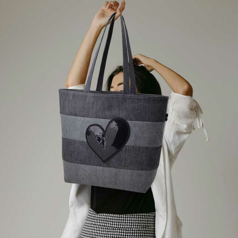 シックなグレー×ブラックの世界に、スパンコールの煌めきが羽音のように響く、大人のための“カッコ可愛い”を詰め込んだバッグです。