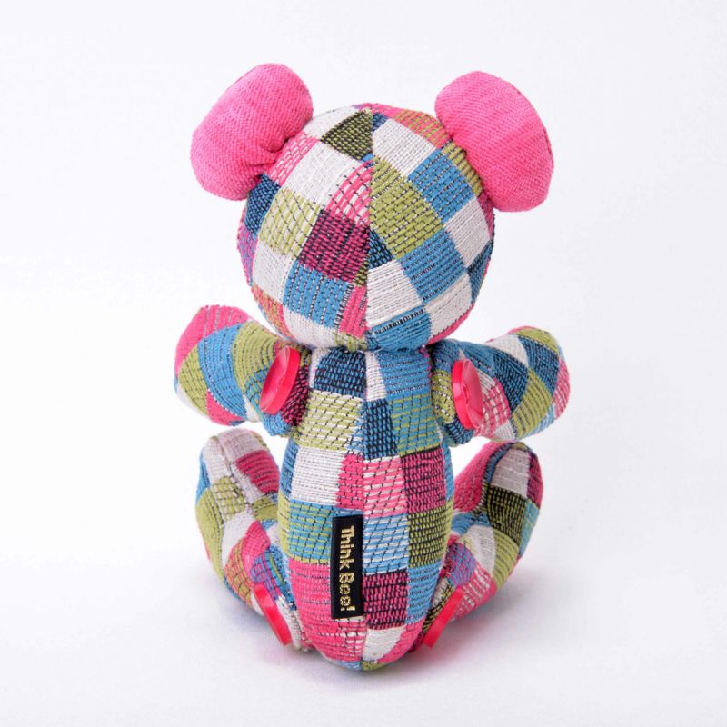 このクマたちは、世界中から集めた生地でひとつひとつ手作りされました。