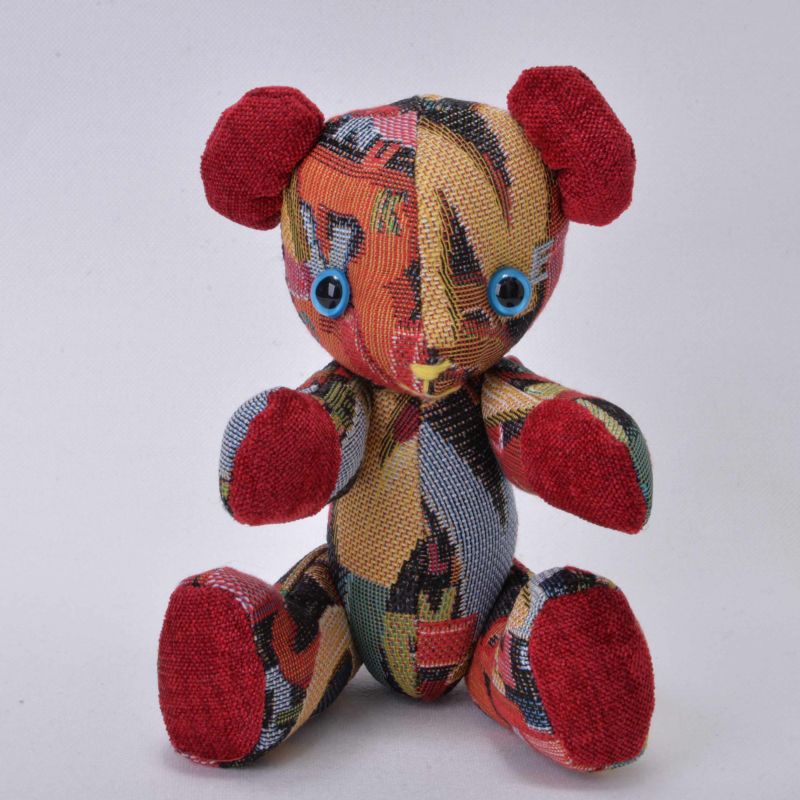 このクマたちは、世界中から集めた生地でひとつひとつ手作りされました。