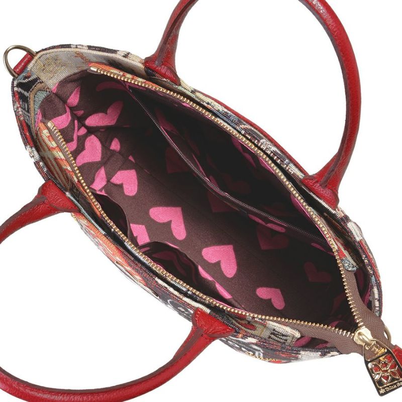 ゴブラン織りでも重厚感ではなく垢抜けた洒落た感じで、持ち手の赤がアクセントになっていて、とっても素敵です。サイズも軽さも私にはちょうど良く、眺めているだけでも嬉しいので外出が楽しみです。柄の出方、商品画面通りなのも感服致しました。