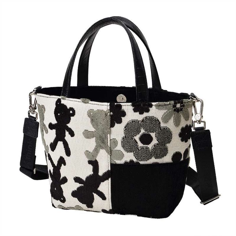 | 素材 | | 表地原産国 | ベルギー・トルコ | | 表地 | ビスコース・ポリエステル・他 | | 裏地 | コットン100% | | ハンドル | 牛革 | | その他 | ショルダーストラップ: