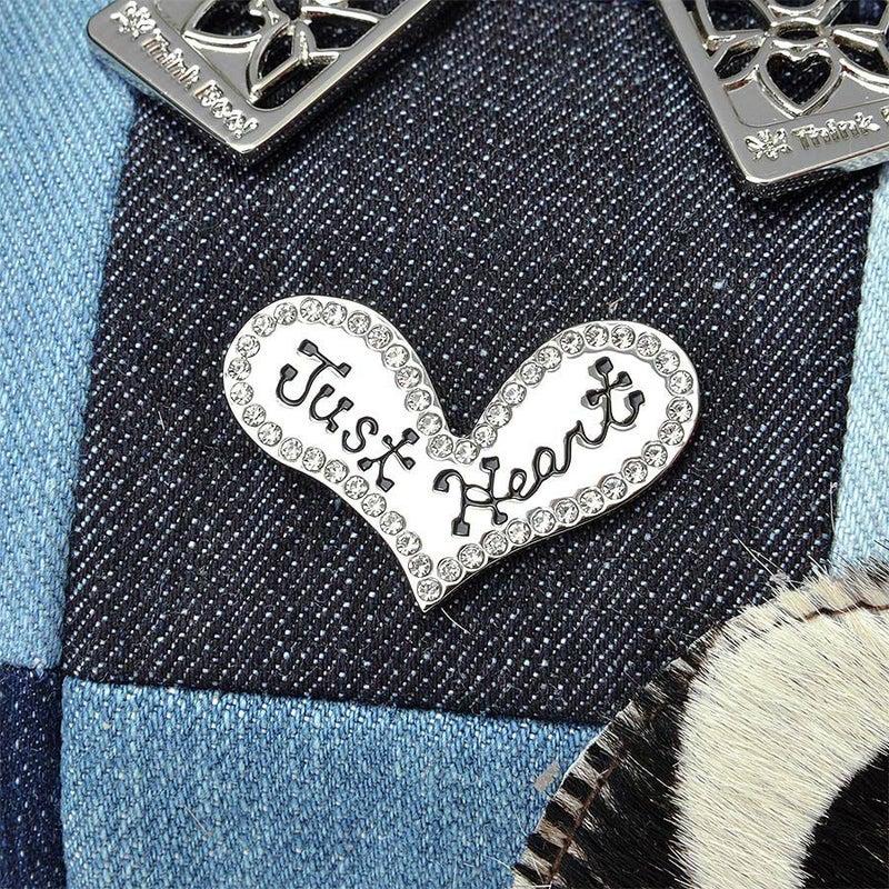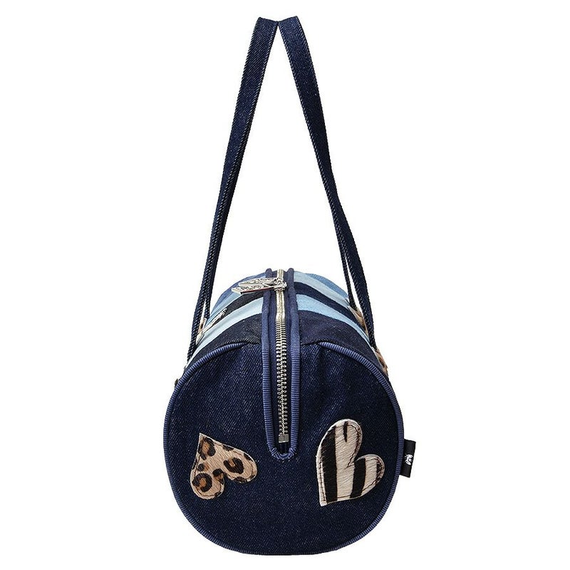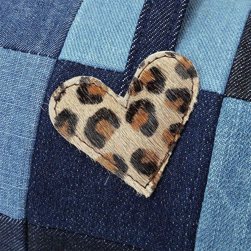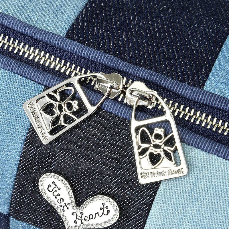 裏地はブルー地にパープルのハートプリント生地で爽やかに、デニムと相性も抜群!