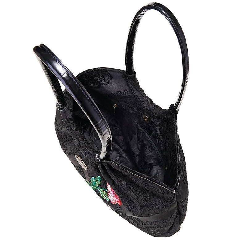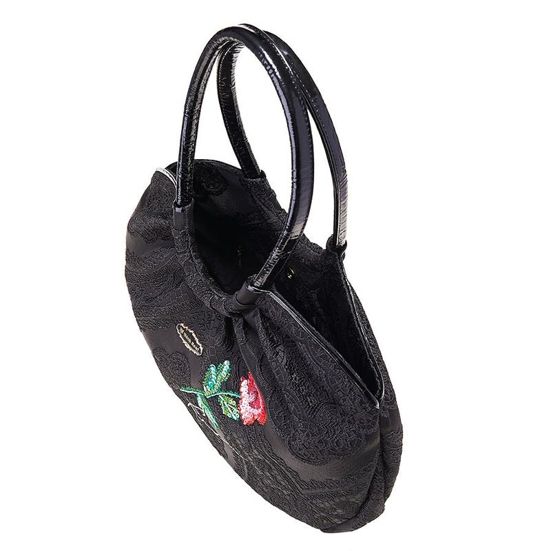 裏地はハンドルに合わせてシックにブラックの花柄ジャカード織生地。