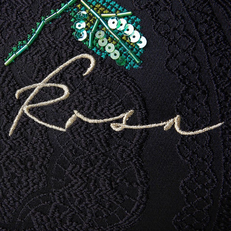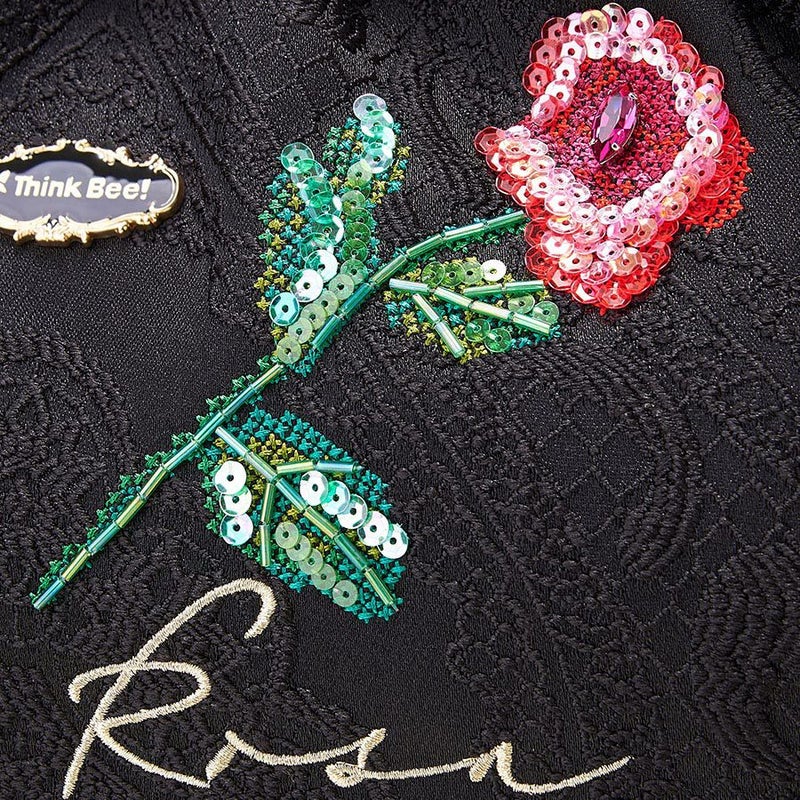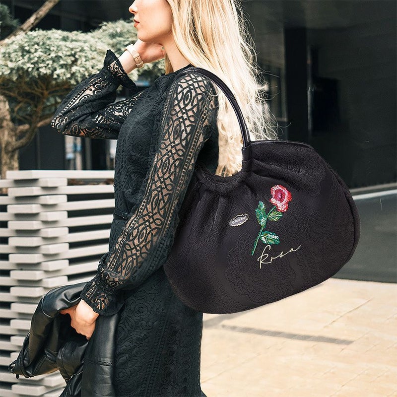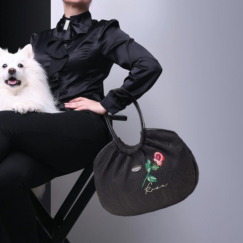 可憐なレースの繊細さを表現したさらっとした手触りのトルコ製ブラック織生地をベースに、一輪の鮮やかな赤いバラをミシン刺繍で繊細な濃淡をつけて表現。
