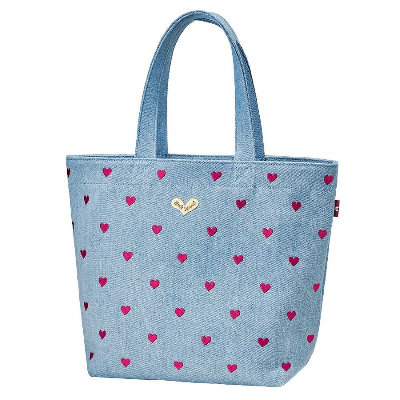 ハードなイメージのデニムに、刺繍でピンクハートを並べてオン。