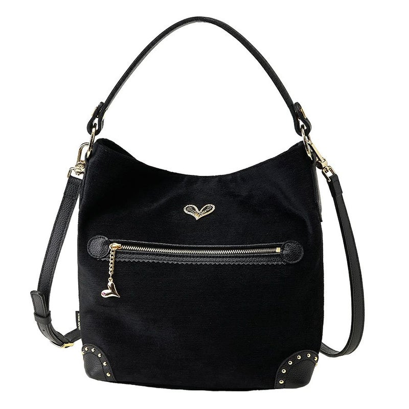 小物の収納に便利なファスナーポケットは、イメージに合わせて可愛いぷっくりハートの引手付き。持ちやすい長さがあるので開閉しやすい。