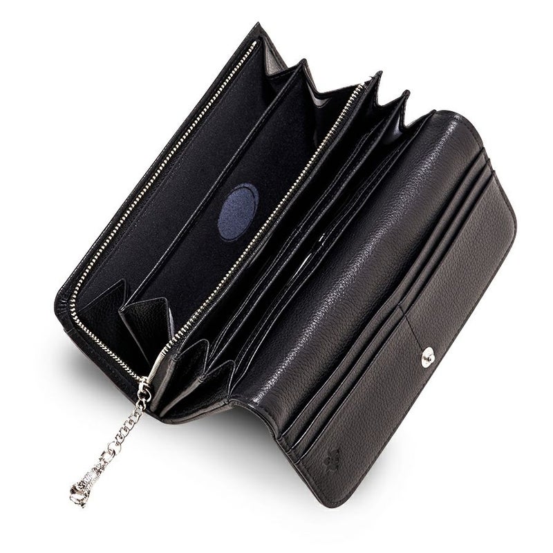 L型ファスナー式小銭入れは、大きく開いて中身が見やすく出し入れが簡単。