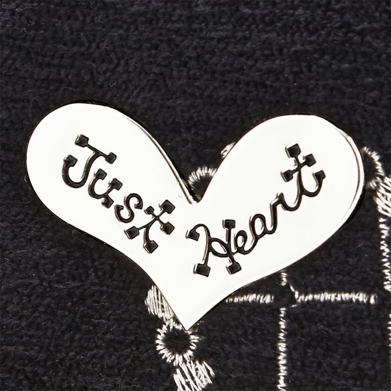 背面にはすぐに取り出したいものの収納に便利なポケット付き。アクセントにJust Heartロゴ入りプレートを配置ました。