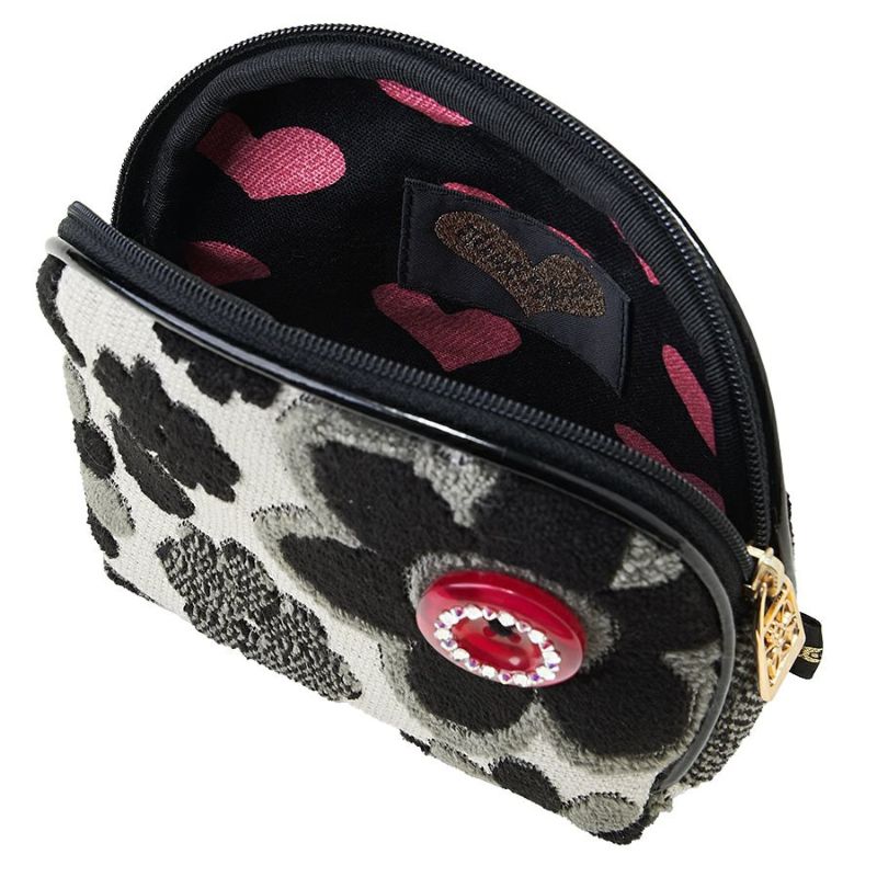 お揃いのポーチは大きく開くファスナー式。コスメや小物をマルチに収納できる、ほどよいサイズ感でお出掛けに便利です。