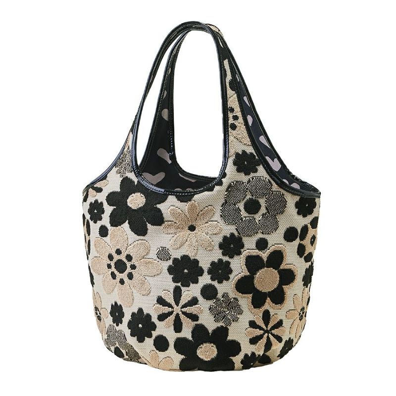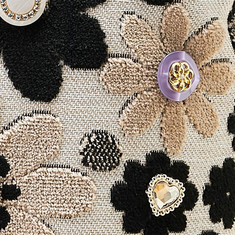 ほんのり光沢のあるベージュ地にふわっと愛らしく咲き誇るブラックやライトブラウンの花々が洗練された大人のキュートを演出します。