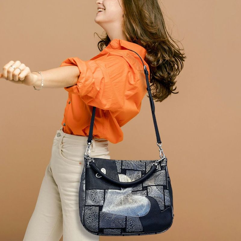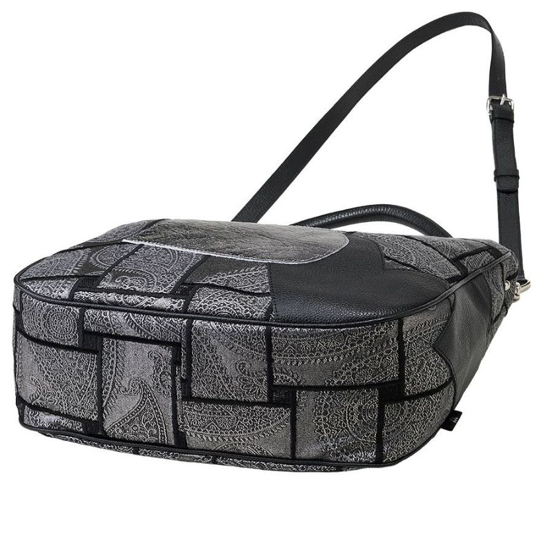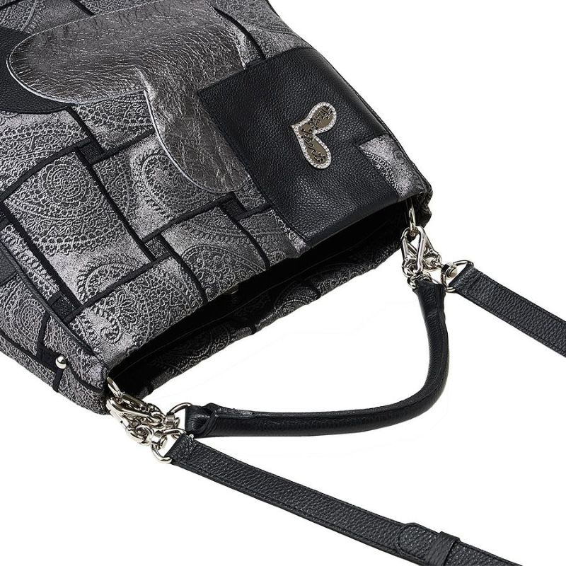独創的な生地に、ブラックとメタリックハートの柔らかく、しなやかな牛革をパッチワークした立体的で個性的なデザイン。上質で洗練された大人のエレガンスを演出してくれます。