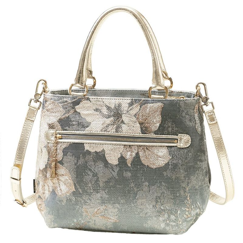 ハンドルには光沢感のあるシャンパンゴールドの箔押し牛革を用いて、全体の印象を華やかに引き締めました。