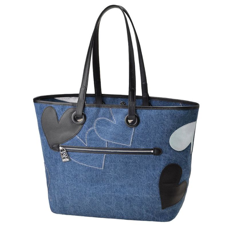 洗いをかけてユーズド感を出した、日本が誇る岡山のハイクオリティデニムをベースに、箔押しなどの表情豊かな牛革やサテン生地、デニムの生地目の変化にこだわって銀糸のステッチを施したそれぞれのハートたちを遊び心たっぷりにアップリケ。