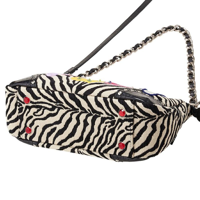 ファスナー周りのパイピンクにブラックのクロコ型押し牛革を使用し、ゼブラをクールに見せる引き締め効果と高級感のある印象に。開口部同様、同革の持ちやすい丸い引手を付けました。