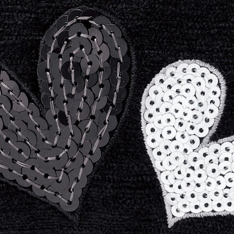シルバーとブラックのスパンコールをハート型に敷き詰めて刺繍した弾むようなメタリックハートが、動くたびにキラキラと輝きます。