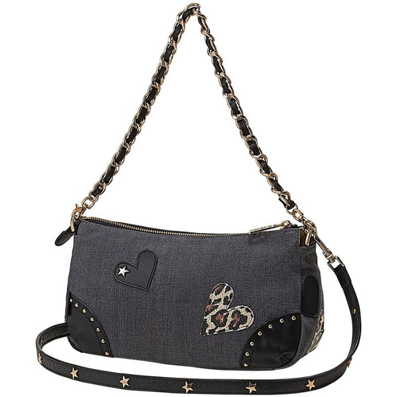 星型スタッズがついたロックなレザーのアップリケは、キュートなハート型でちょっぴり甘さをプラス。