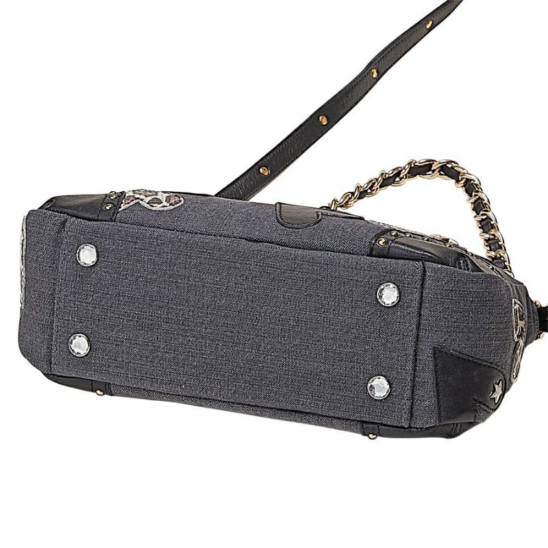 ブラックレザーを通したチェーンハンドルは、ストラップ使用時につけたままにしておいても、デザインのアクセントになります。