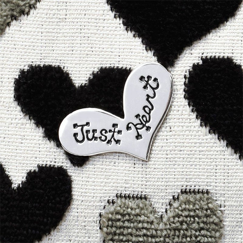 ハートモチーフのふんわりとした凹凸感がキュートで楽しいベルギー製生地で、フォルムもハート型に仕立てました。