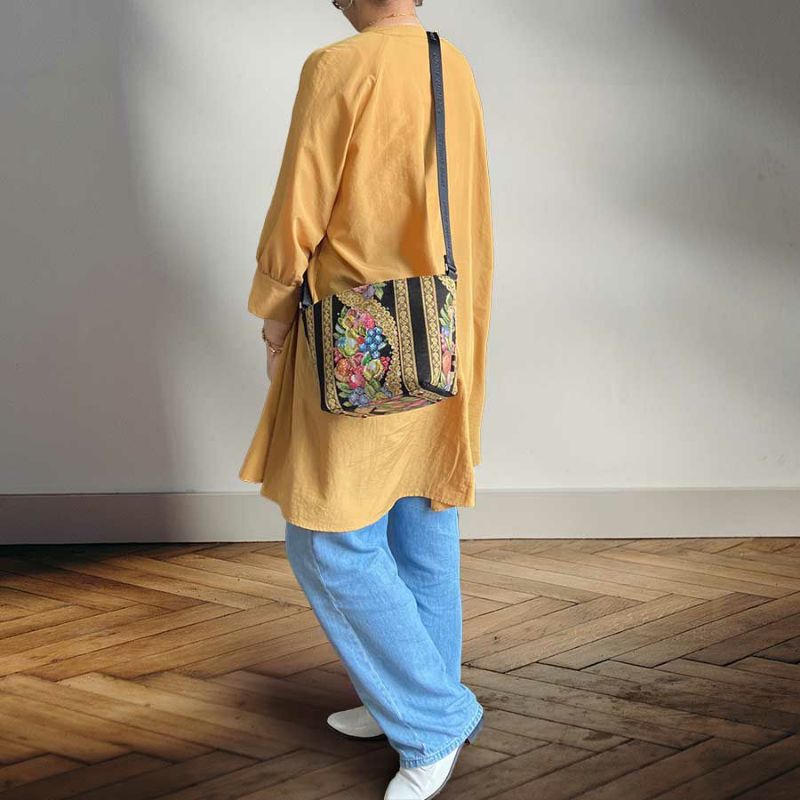 コットン10% | | ストラップ | ナイロン・牛革 | | その他 | - | | サイズ(約) | | 本体(突起部を除く最大) | H 19 × W 26.5 × D 13 cm | | ハンドル立ち上がり | -/- | | ショルダーストラップ長さ | 71~133 cm/無段階調節 | | 重さ | 380g | | | 仕様 | | 開口部 | ファスナー式 | | メイン室 | 1 /- | | 内側 | ファスナー付ポケット×1・オープンポケット×2・前後オープンポケット×2 | | 外側 | - | | ハンドル | - /ショルダーストラップ | | 底鋲 | 4 | | その他 | 作品により柄の出方や装飾が異なる場合があります | | 補足情報 | | - | |