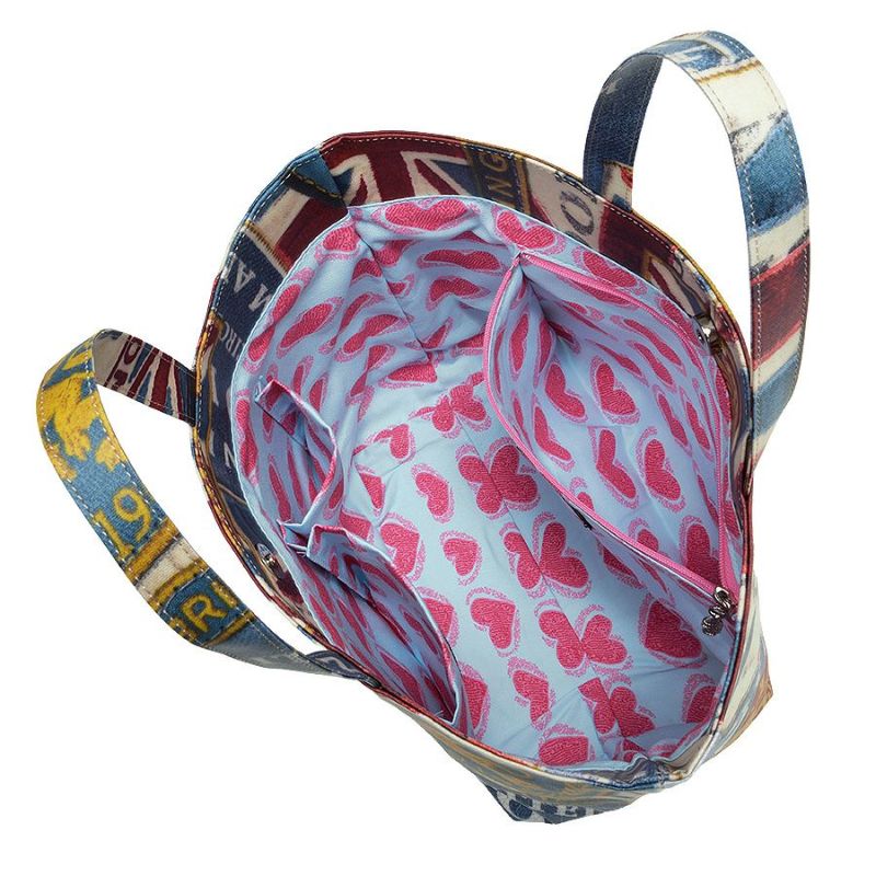 表地は英国をモチーフにした様々なエンブレム柄と、ユーズド感漂うデニムを思わせるかすれた色合いが、ちょっぴりワイルドでカッコいい☆