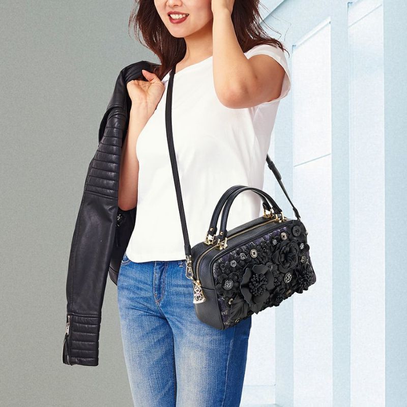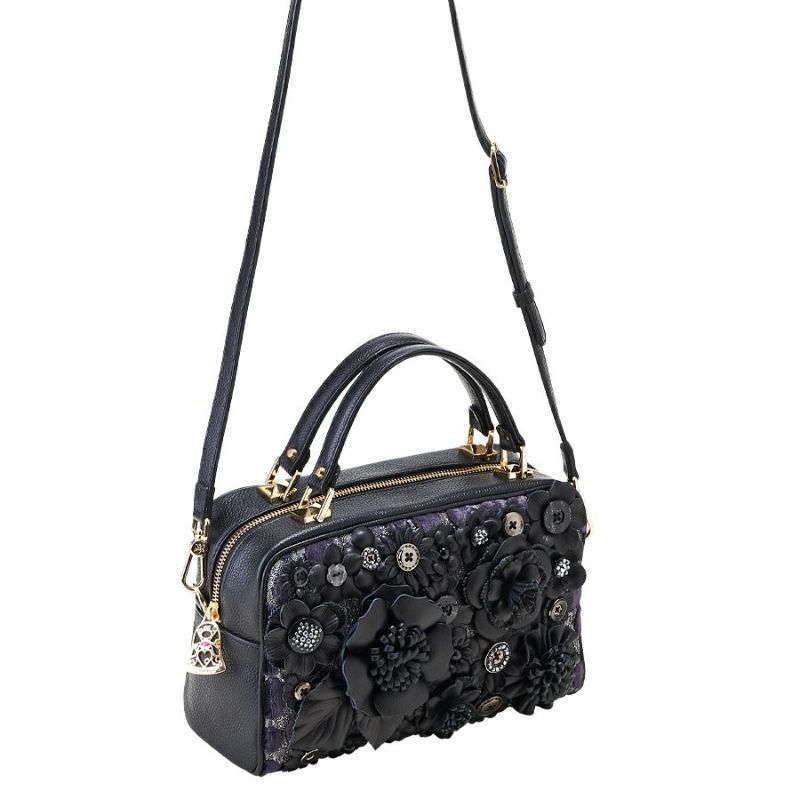 素材 | 表地原産国 | トルコ | 表地 | 前背面:-マチ・底:牛革 | 裏地 | ポリエステル100% | ハンドル | 牛革 | その他 | 牛革・ボタン・クリスタルガラス・ラインストーン ショルダーストラップ:牛革 | サイズ(約) | 本体(突起部を除く最大) | H 17 × W 26 × D 10 cm | ハンドル立ち上がり | 10 cm/- | ショルダーストラップ長さ | 109~130 cm/片側4段階調節 | 重さ | 620g | | 仕様 | 開口部 | ファスナー式 | メイン室 | 1 /- | 内側 | ファスナー付ポケット×1・オープンポケット×2 | 外側 | オープンポケット×2 | ハンドル | 2 /ショルダーストラップ付 | 底鋲 | 4 | その他 | 作品により装飾が異なる場合があります表面片側に牛革装飾 | 補足情報 | - | |