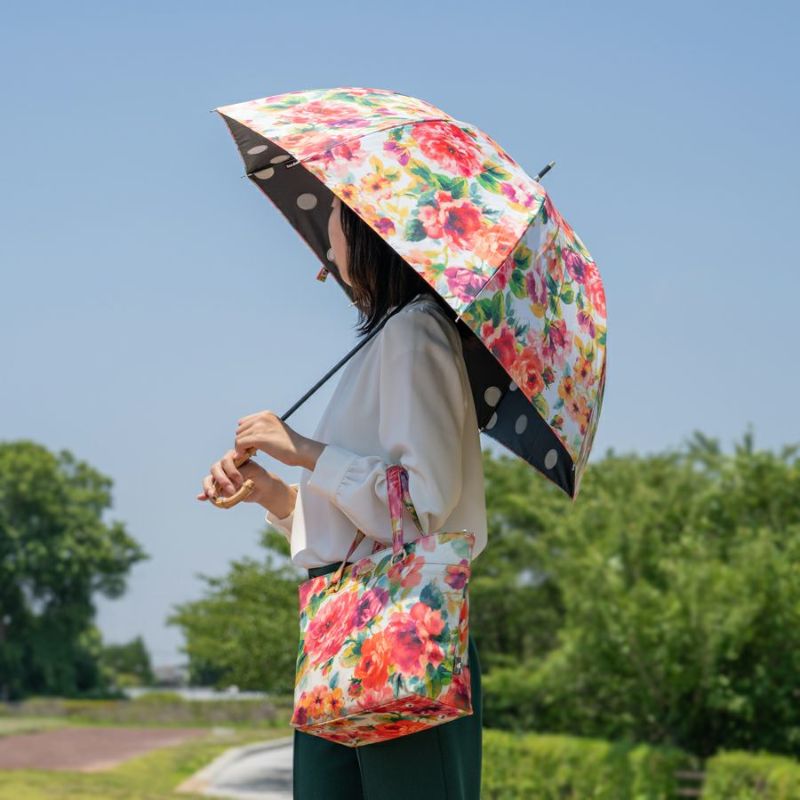 バッグとおそろいの傘が、日常にさりげない彩りを添える。