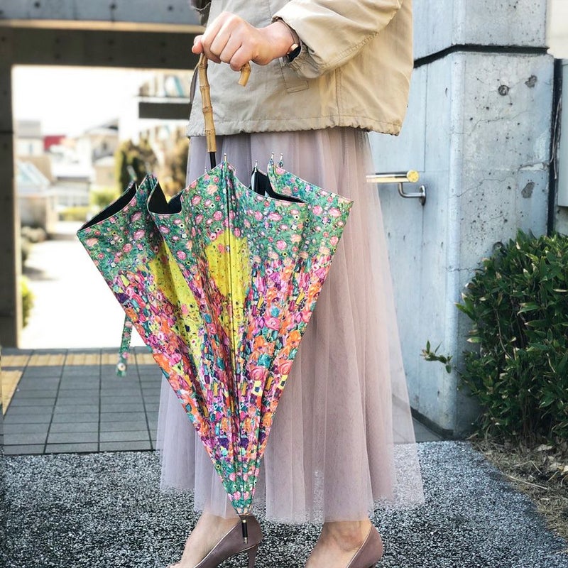 オーストリアの偉大な画家、グスタフ・クリムトの「オイゲニア・プリマフェージの肖像」に描かれた抽象的な模様と鮮やかな色彩をプリントで再現。他にはない独特の柄とカラーリングが目を引きます。