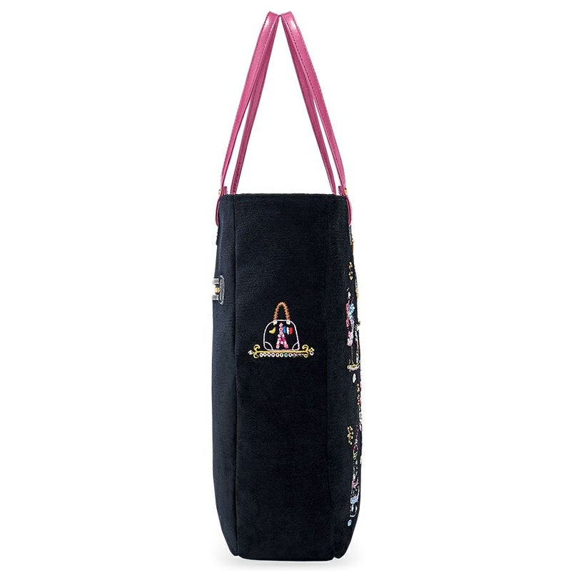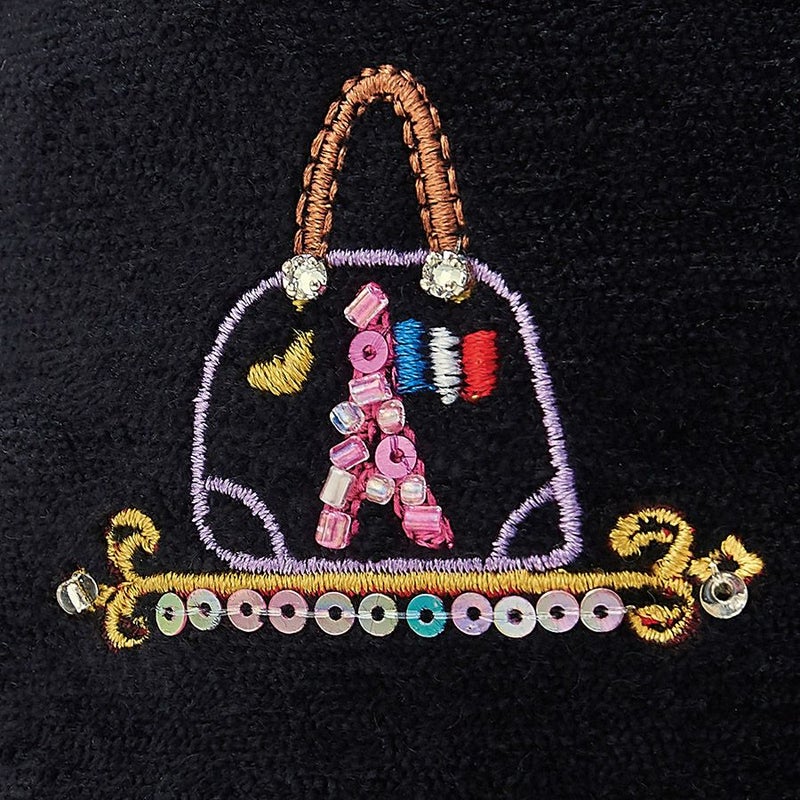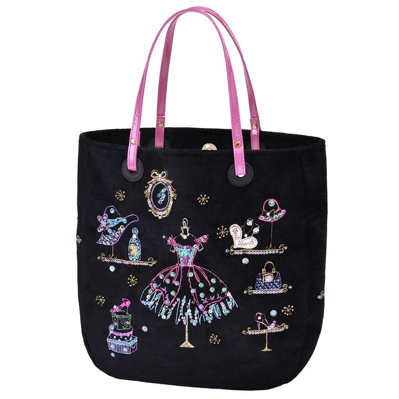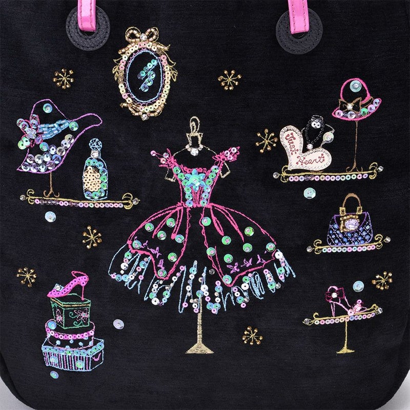 博子・クレメールがパリでスケッチしたドレスやバッグ、小物の数々。そこから厳選したアイテムで構成した、夢のブティックを華やかな刺繍で表現し、ビーズやスパンコールをデコレーション。